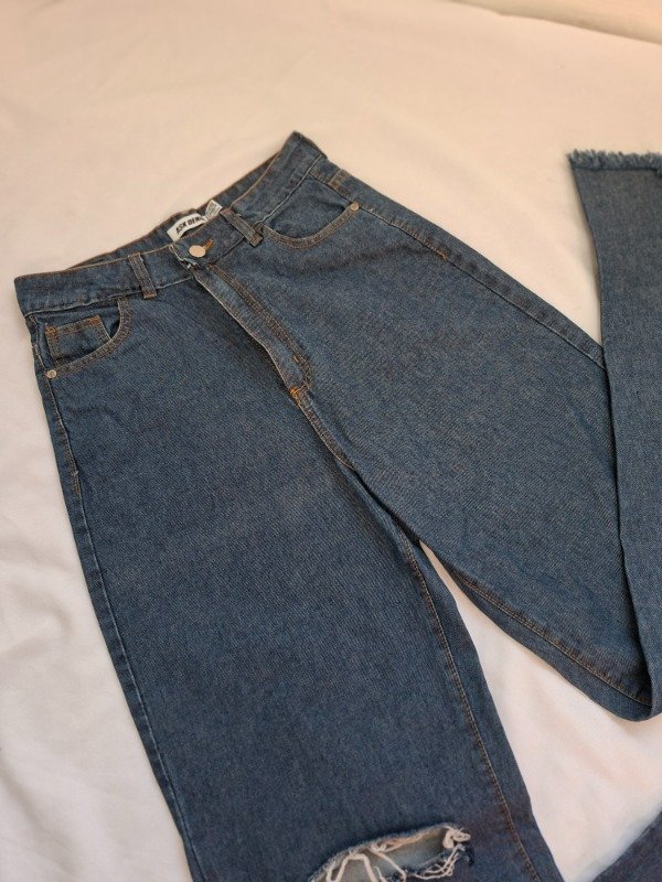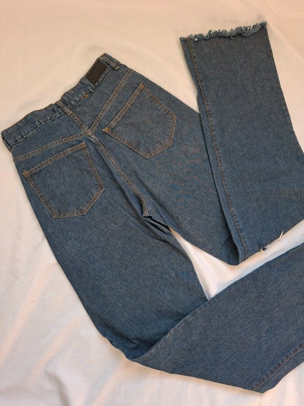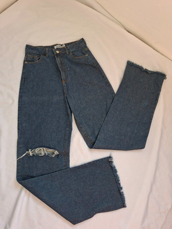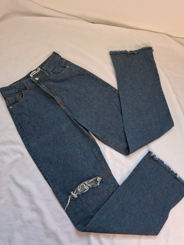 Wide leg color azul, etiqueta talle 42 con roturas. Tiene pasacinto, botón y cierre en condiciones. Con bolsillos en la parte trasera y delantera.