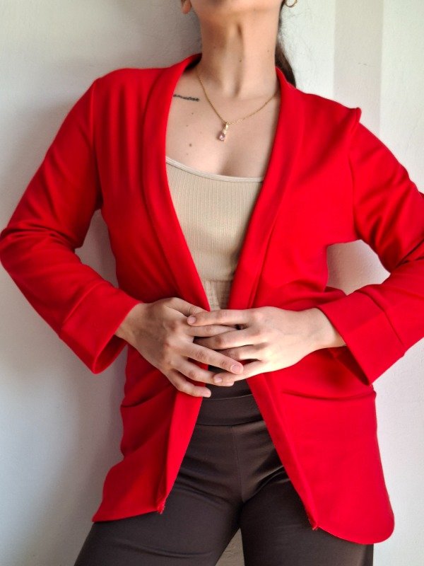 Blazer color rojo. Manga 3/4. Tela liviana. Etiqueta talle M.
