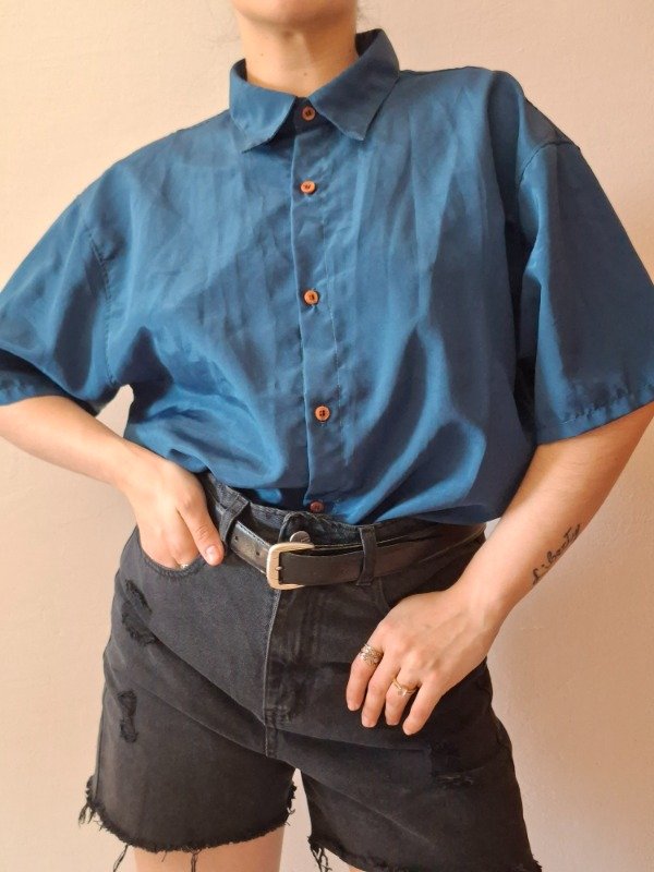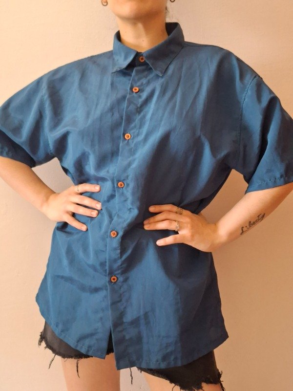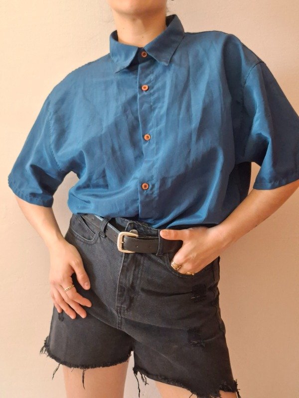 Camisa manga corta color petroleo, con botones, manga corta, tela suave y fresca.