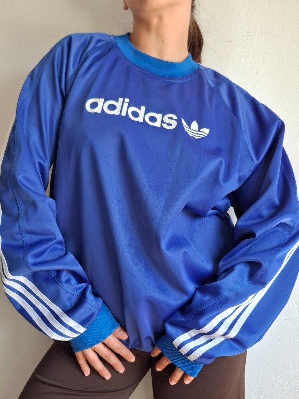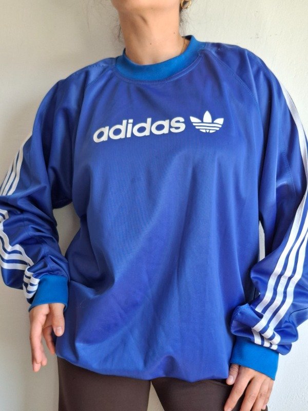 Buzo acetato color azul, con puño. Combinado con blanco. Marca adidas. Talle 1. Abrigado.