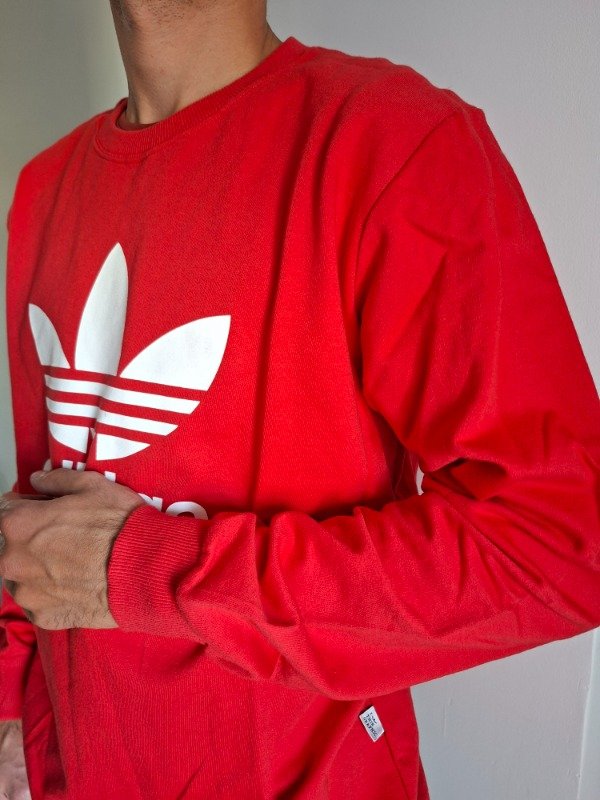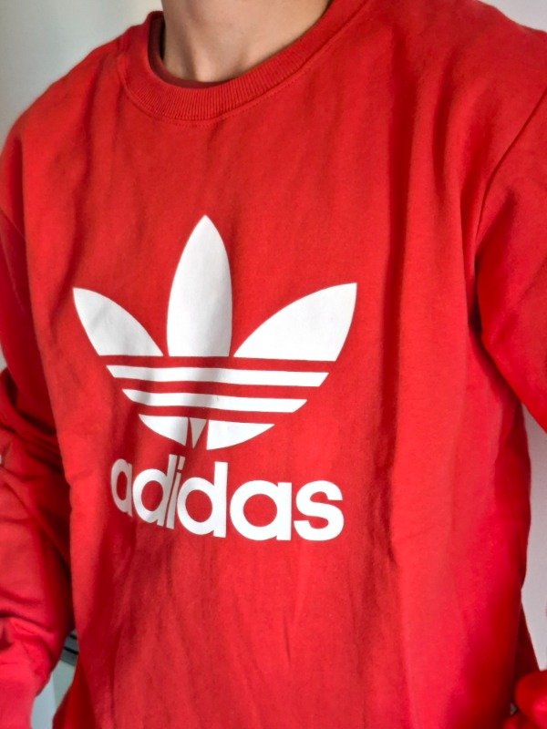 Buzo adidas, liviano, de algodón. Color rojo, manga larga. Etiqueta talle XL. Ideal para temporada de primavera-verano