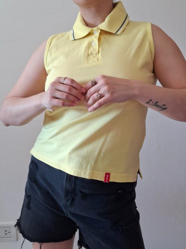 Chomba color amarilla clara, con botones. Marca Gelmin. Tela liviana. Y fresca.